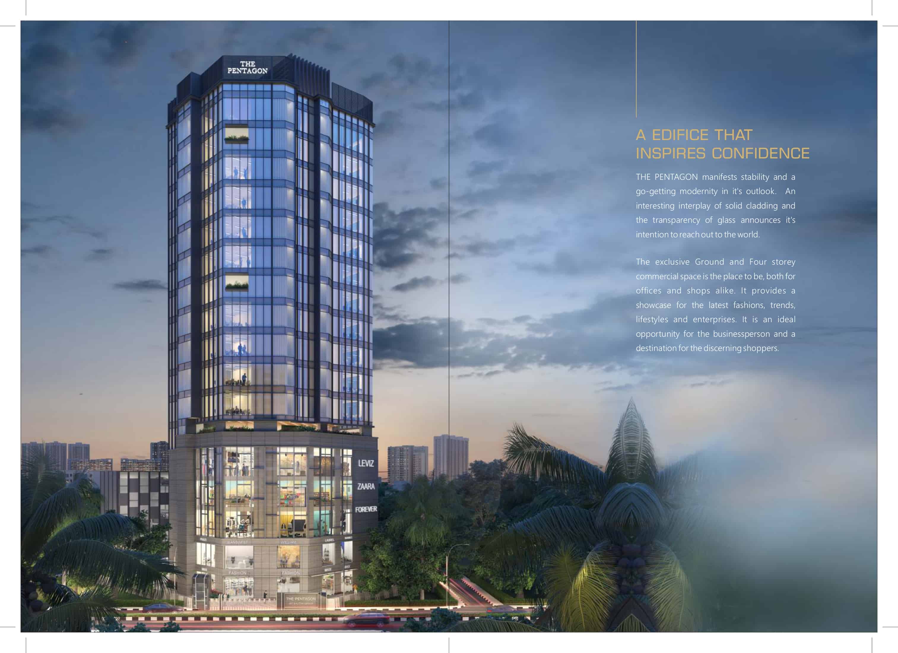 Presenting THE PENTAGON MIRA-BHAYANDER's 1st OF ITS KIND 450sq ft. TO 1215sq.ft. Boutique office spaces that cultivate efficiency. All MODERN COMMERCIAL AMENITIES inclusive of GRAND ENTRANCE LOBBY, CONFERENCE ROOMS, VISITOR WAITING SPACE, CAR PARKING, GARDEN, GYM, CAFETERIA & MANY MORE. At Phatak road, near Canara bank Bhayandar East. BE FIRST TO BOOK YOUR SPACE.